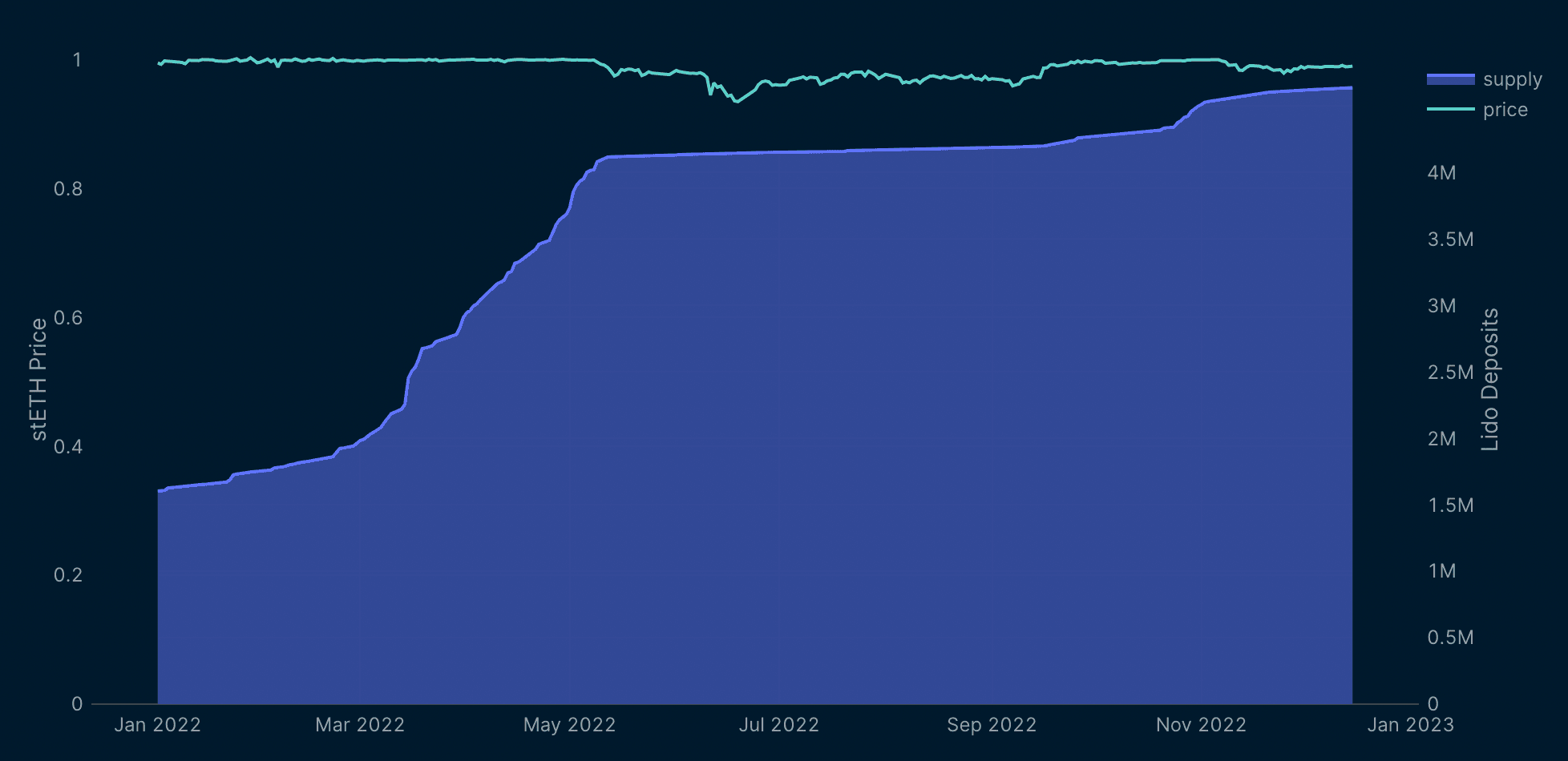 - Our on-chain investigation revealed that contagion stemming from the de-peg of UST and subsequent collapse of the Terra ecosystem was likely the main factor for stETH deviating away from this 1:1 ratio.